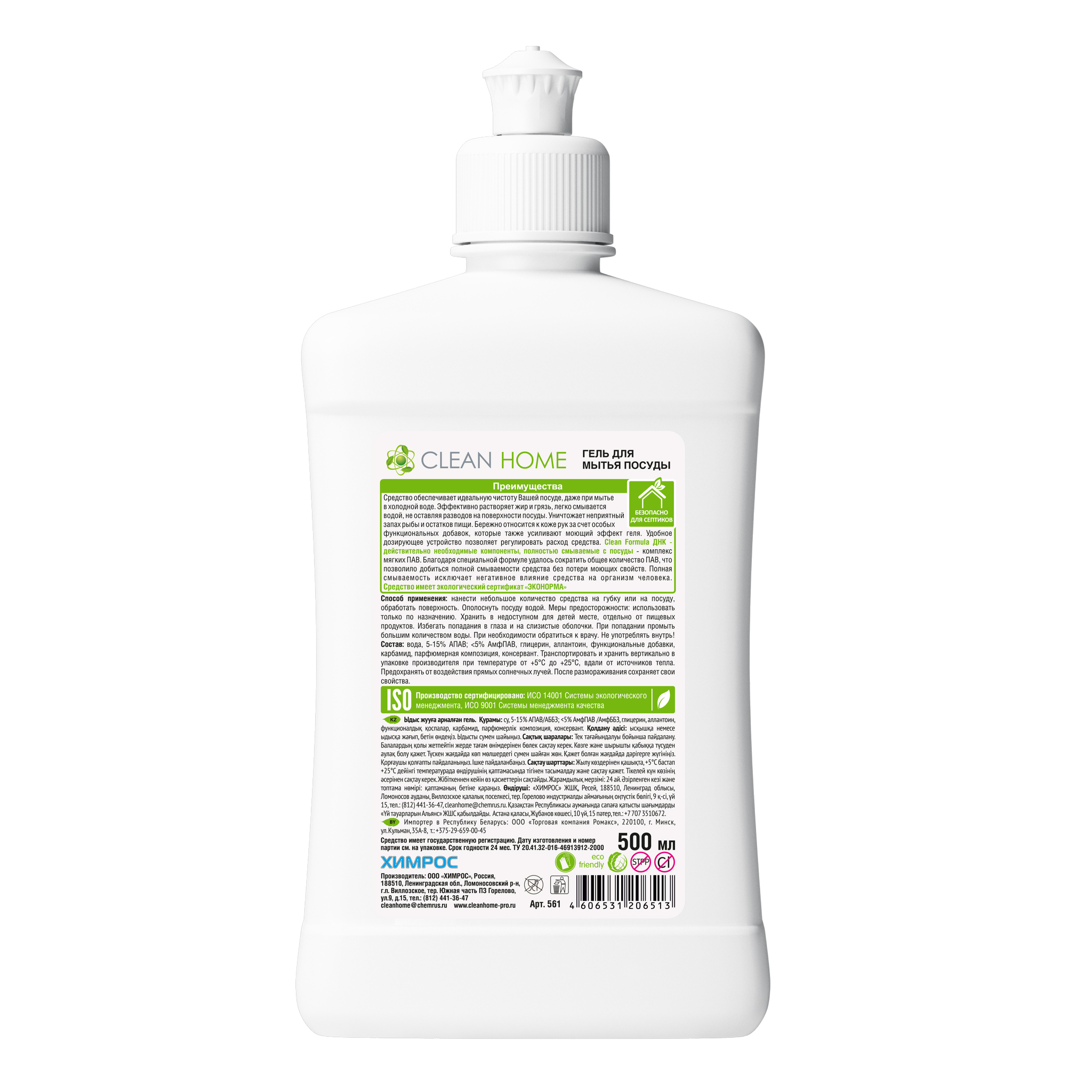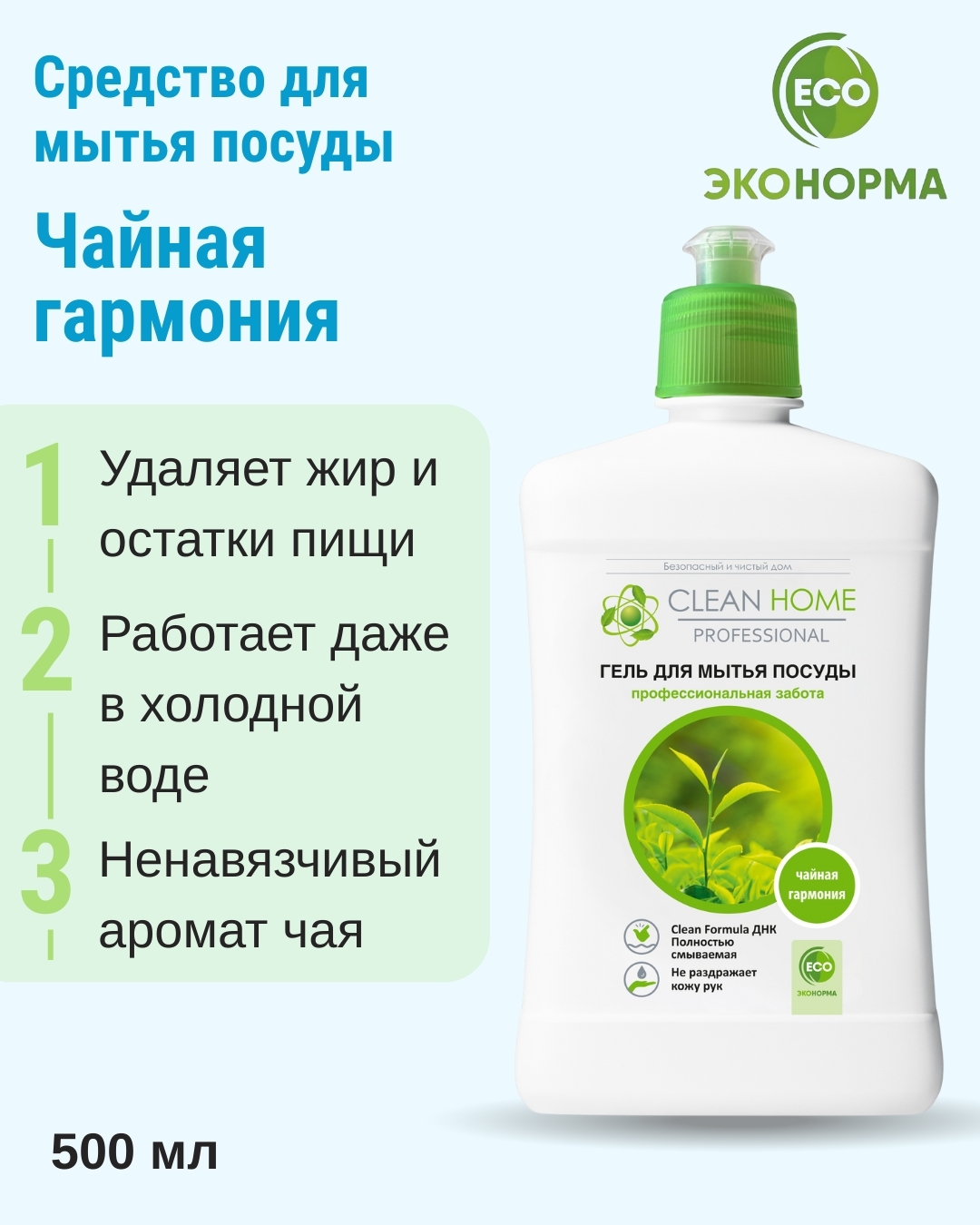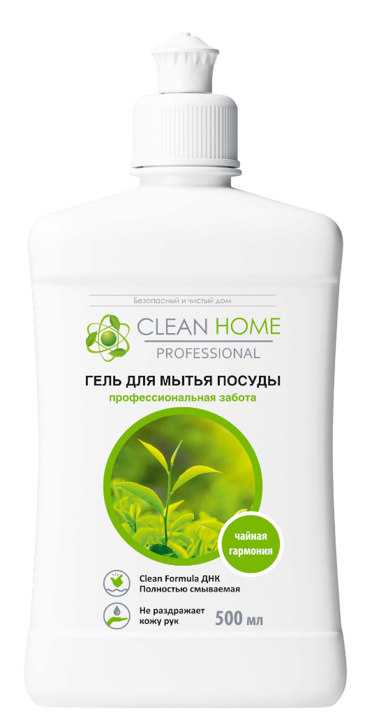 CLEAN HOME Гель для мытья посуды Чайная гармония - это средство, разработанное специально для ухода за посудой. Оно эффективно растворяет жир и грязь, легко смывается водой, не оставляя разводов на поверхности посуды.