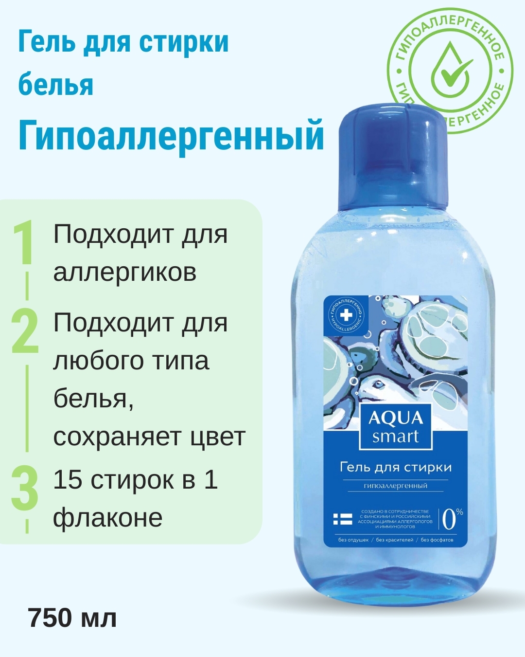 Универсальный концентрированный гель для стирки белья AQUASMART - это инновационное средство, разработанное с учетом рекомендаций Ассоциаций иммунологов и аллергологов из Финляндии и России. Оно идеально подходит для людей с чувствительной кожей, аллергиков, детей, беременных женщин и всех тех, кто заботится о своем здоровье и здоровье своих близких.