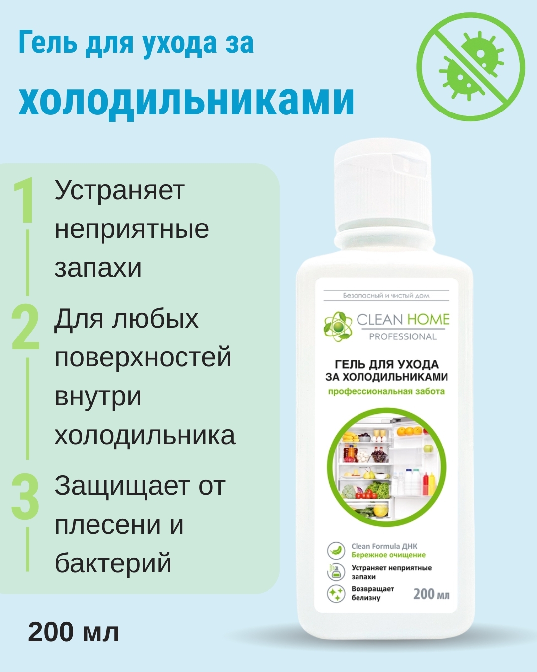 CLEAN HOME Гель для ухода за холодильниками универсальный - это инновационное средство, разработанное специально для ухода за холодильниками и различными бытовыми пластиковыми поверхностями.