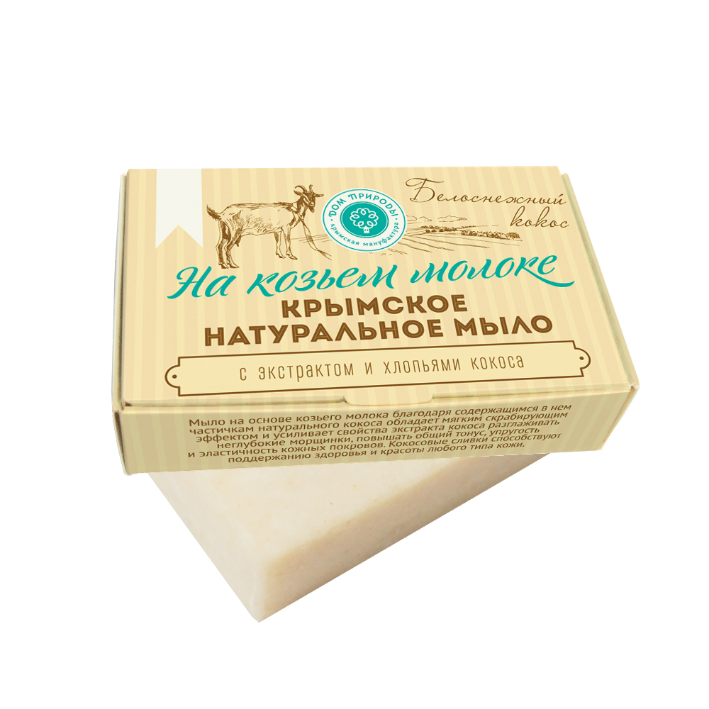омыленные растительные масла (оливковое, кокосовое, касторовое), вода подготовленная, экстракт козьего молока, масло авокадо, масло абрикосовых косточек, кокосовые сливки, стружка кокоса, экстракт кокоса, эфирные масла сандала, ванили, корицы.