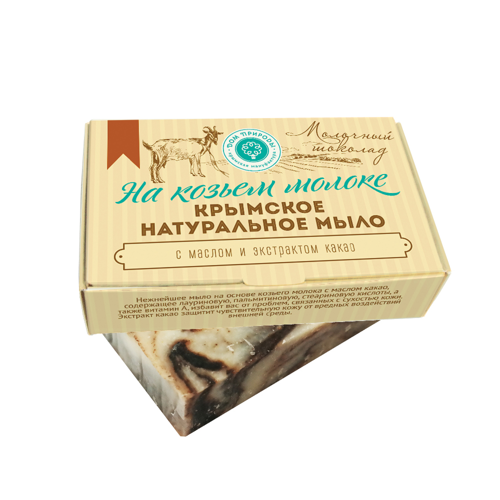 омыленные растительные масла (оливковое, кокосовое, касторовое), вода подготовленная, экстракт козьего молока, масло какао, масло миндаля, порошок какао, экстракт какао, эфирные масла корицы, апельсина, мускатного ореха.