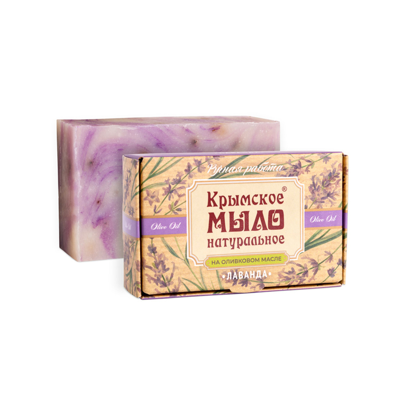 омыленные растительные масла (оливковое, кокосовое, касторовое), вода подготовленная, масло виноградных косточек, масло ши, экстракт лаванды, эфирные масла лаванды, герани; цветки лаванды, кармин.