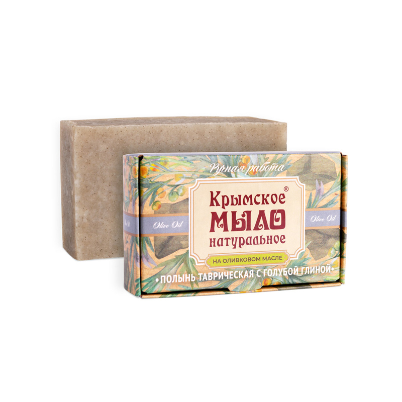 омыленные растительные масла (оливковое, кокосовое, касторовое), вода подготовленная, масло виноградных косточек, масло льна, отвар полыни таврической, глина голубая, эфирные масла полыни таврической, мяты перечной, бергамота.
