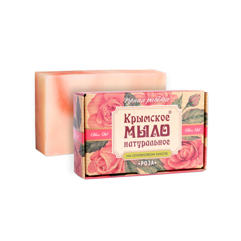 омыленные растительные масла (оливковое, кокосовое, касторовое), вода подготовленная, масло шиповника, отвар марены красильной, экстракт розы, эфирные масла герани, розы; витамин Е, кармин.