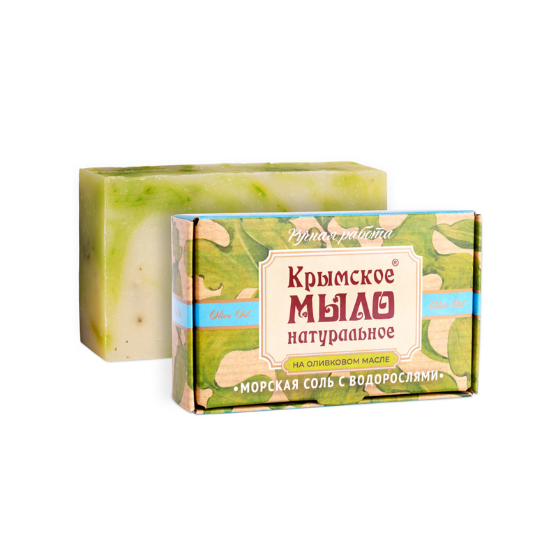 омыленные растительные масла (оливковое, кокосовое, касторовое), вода подготовленная, морская соль, масло сладкого миндаля, экстракт ламинарии, эфирное масло лимона, измельченная ламинария, спирулина молотая.