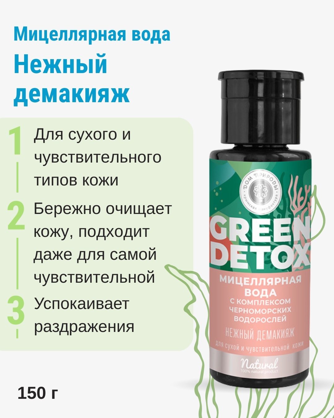 Комплекс черноморских водорослей объединяет ламинария и фукус. Эти экстракты помогают удерживать влагу, поддерживают тонус кожи и делают очищение более комфортным. Гидролат липы снижает раздражение и покраснение, а глицерин удерживает влагу, помогая избежать стянутости после умывания.