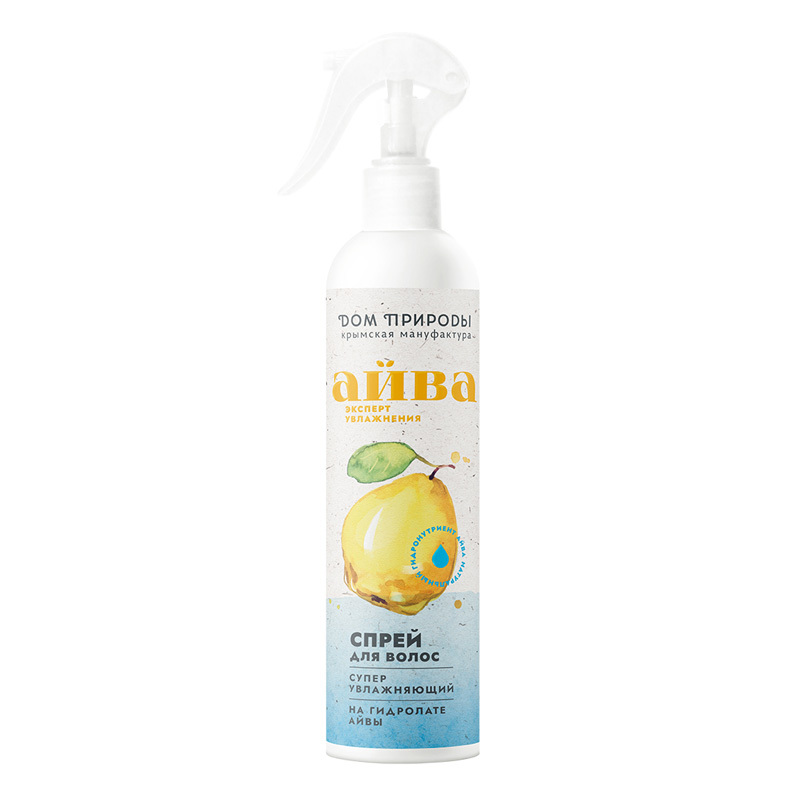 Спрей на гидролате айвы не утяжеляет и не жирнит волосы, обеспечивает легкость расчесывания и профилактику ломкости, предотвращает электризацию. Наполняет волосы влагой и жизненной силой, придает блеск. Айва в сочетании с церамидами и гиалуроновой кислотой защищает их от обезвоживания и ломкости. Коллаген уплотняет пряди, дарит им гладкость и эластичность. Спрей помогает восстановить волосы после воздействия солнца и соленой воды.