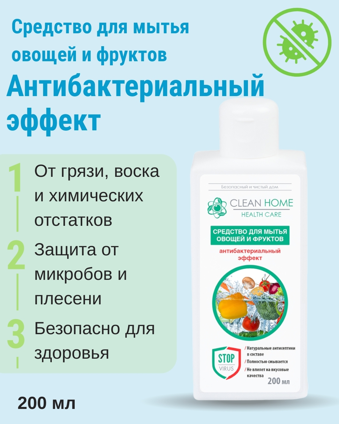 CLEAN HOME Средство для мытья овощей и фруктов - это универсальное средство, предназначенное для мытья овощей, фруктов, сухофруктов, яиц и грибов. Оно содержит комплекс фруктовых кислот, которые уменьшают активность болезнетворных микроорганизмов. Средство нейтрализует вредные химические вещества, не содержит красителей и искусственных ароматизаторов.