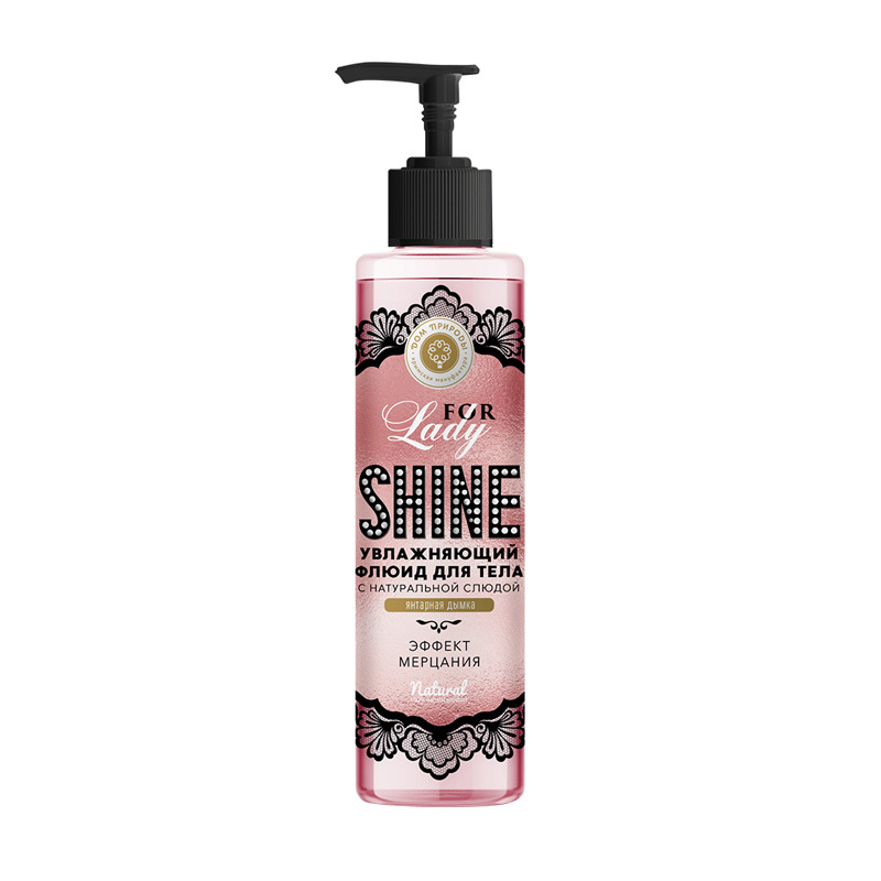 For Lady Shine эффект мерцания с натуральной слюдой (с бело-жёлтым переливом). Флюид – активная сыворотка, обеспечит коже необходимое увлажнение. Обладает неповторимым притягательным ароматом. Частички натуральной слюды придают коже нежное золотистое сияние. Гель алоэ прекрасно увлажняет, ускоряет регенерацию клеток. Экстракты женьшеня и жасмина повышают упругость кожи, оказывают омолаживающее действие. Идеальное дополнение вечернего образа!